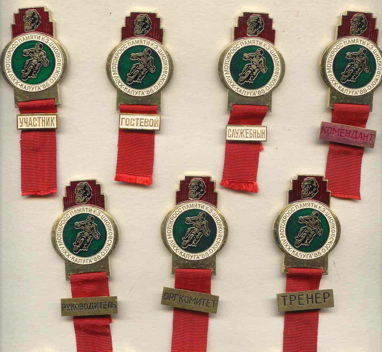 Наградные знаки XXI мотокросса памяти К.Э. Циолковского.
