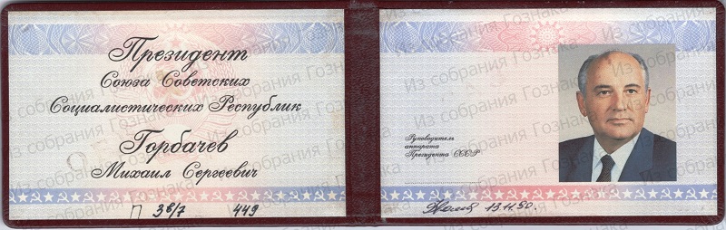 Бланк удостоверения Президента СССР М. С. Горбачева. Образец. 1990 год.