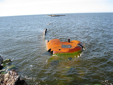 фрагменты носовой и кормовой частей находятся на глубине 12-14 метров