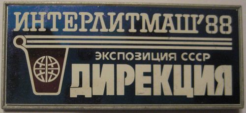 Выставка "ИНЕРЛИТМАШ-88". Ситал на металлической подложке. Размер 56х24.5 мм