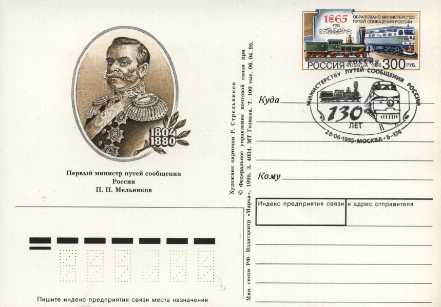 Рассказал интересно, неплохо бы и знаки имеющиеся показатьalbost5 писал(а) :Эта серия охватывает весь период, поскольку начинается с Елизарова (28.10.1917 - 7.01.1918 ), а вот потом почему-то пропущен Рогов (24.02.1918 - 9.05.1918 ), которого сменил Кобозев ( 9.05.1918 - 24.06.1918 ) всего на полтора месяца и опять пропущен Невский (25.07.1918 - 15.03.1919 ), после которого железной дорогой руководил Красин (30.03.1919 - 23.03.1920 ). Странно, но снова пропуск. После Красина наркомами были Троцкий (25.03.1920 - 10.12.1920) и Емшанов (10.12.20 - 14.04.21), которого на посту наркома путей сообщения сменил Дзержинский (14.04.1921 - 2.02.1924). Дальше всё встало на своё место. В 1977-м году министра путей сообщения СССР Бещева сменили Павловский (1977-1982), Конарев (1982-1990) и Матюхин. Период МПС Российской федерации на постах министров с 20.01.1992г продолжили Фадеев, Зайцев, Аксёненко, Старостенко, опять Аксёненко, ещё раз Фадеев и закончил 9.03.2004г Морозов. Началась эра ОАО " Российские железные дороги" , теперь уже без наркомов и министров. У меня эти знаки года с 1980-го и по моему новых портретов после Бещева не было, кстати не знаю кто их заказывал и изготавливал, если кто-то знает - подскажите. С уважением, Александр. Возможно кто-то знает как можно оценить эту серию знаков?andrey_zd писал(а) :Есть такая серия знаков, только охватывает к сожалению не весь период НКПС - МПС