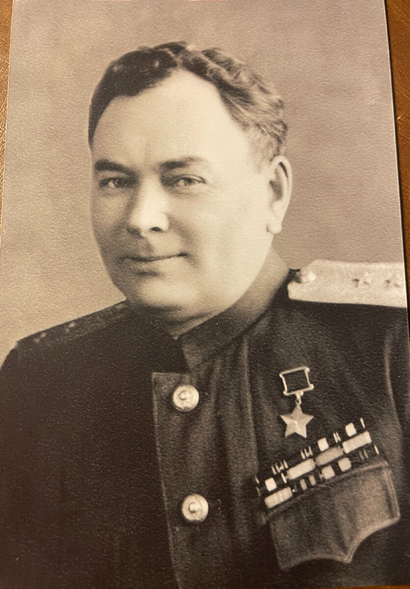 Рядом с генерал-лейтенантом Рослым стоит Герой Советского Союза с погонами генерал-майора. Из восьми планок - две к орденам(Ленина и Отечественной войны I-ой степени) и шесть к медалям("За боевые заслуги, три "оборонных", "За взятие Будапешта", "За освобождение Белграда")....