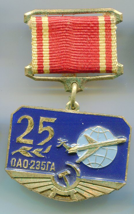 Правительственный отряд. В 1956 году на базе аэропорта «Внуково» был сформирован 235 авиаотряд, предназначенный для воздушных перевозок особо важных персон. Условно может подойти под 20-летие. Но, вряд ли юбилейные значки 235-го ЛО сделали бы упор на международные рейсы. Вот их знак на 25-летие.Vjacheslav писал(а) Вс, 07 янв 2024 07:40:48: ↑Моя версия: Это знаки к мероприятию чего-то малого, но важного. Например, правительственного авиаотряда.Стас КСЛ писал(а) Сб, 06 янв 2024 23:45:12: ↑ Исходя из версии, что это знаки из пробной серии (образцы), а не малый тираж для кого-то (даже исходя из тиража 10 штук, знаки бы "выплыли") и год не позднее 1976 г. (держа в уме 1972 г.) я пробую сделать версию, что знаки делались к 30-летию ЦУ МВС (Центрального управления международных воздушных сообщений).