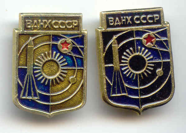 Снова значки ВДНХ с космической символикой.