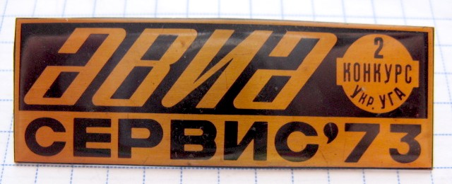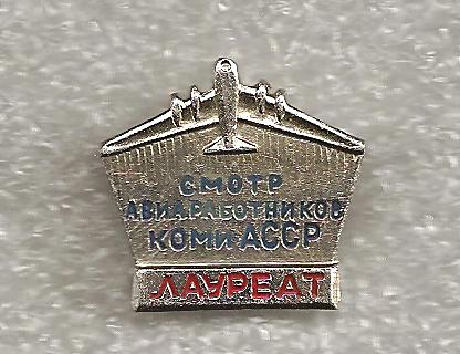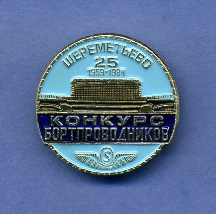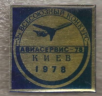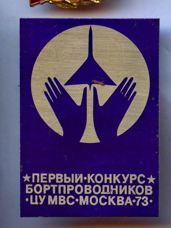 1974 г. Победитель 2-го всесоюзного конкурса "За отличный авиасервис" Металлическая основа, оргстекло, булавка, диаметр 40,5 мм.