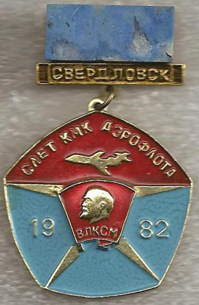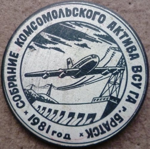 Стас КСЛ писал(а) Чт, 10 янв 2019 16:29:43: 1983 г., 8-й слёт КМК в Ульяновске и, естественно, указано, что в 1983 году исполнилось 60 лет Аэрофлоту. Латунь, булавка, диаметр подвески 26 мм.