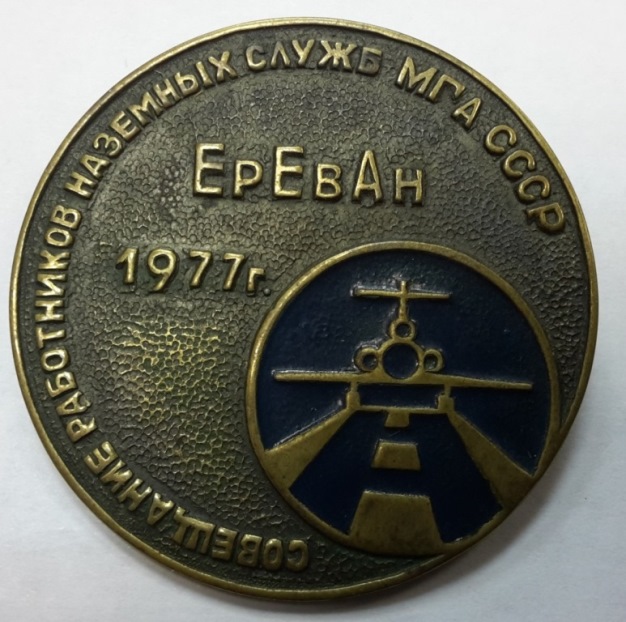 Совещание наземных служб МГА СССР. Ереван 1977 г. Диаметр 42 мм. Большая булавка.