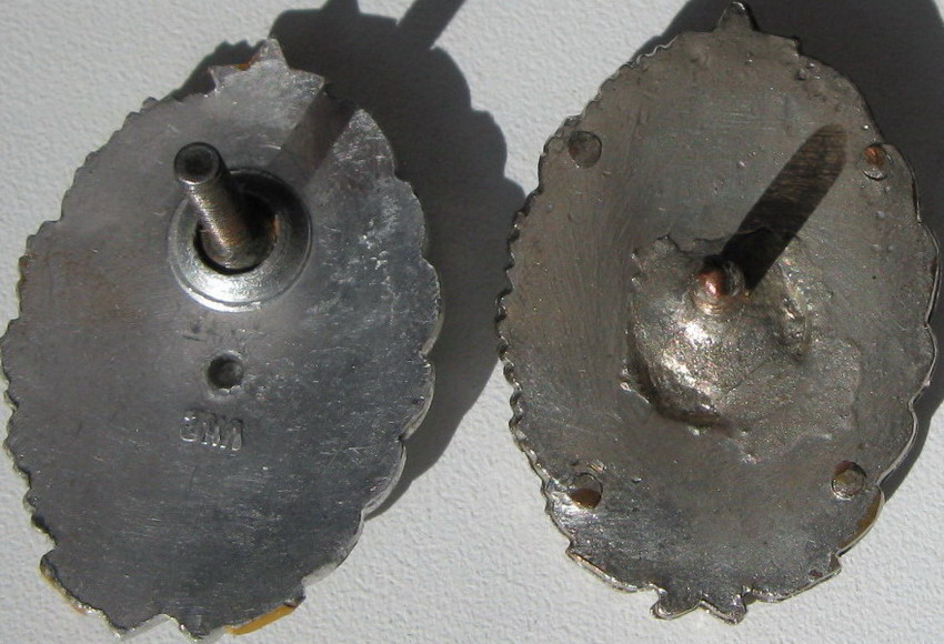Левый из первых алюминиевых. Их не сразу начали на мондворе делать. Есть разные клейма производителя.novichovyuriy писал(а) :Вот еще пара. Правый - обыкновенный, большой (27*38), с двухсторонним серебрением, а вот левый - алюминевый с клеймом "ЗХЛ" (Московский завод художественного литья). Я читал на нашем форуме, что алюминевые делали только на мон. дворе. Значит левый какой-то "левый"?