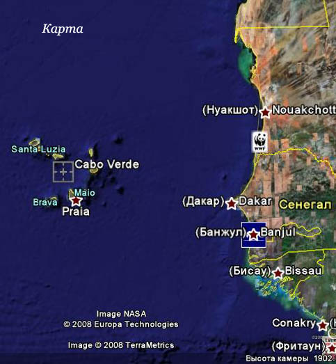 В выше приведённой фразе из репортажа NEWSWEEK , есть незначительная неточность при описании глубины залегания лодки на грунте соотносительно удалённости от береговой зоны. И вот, почему! На таком расстоянии от суши таких глубин, в принципе, быть не может. Даже Марианские острова, расположенные рядом с 11 км. одноимённой ВПАДИНОЙ (ЖЕЛОБОМ...), от 5 км глубин удалены, как минимум, на 200 км. Ближе всего 5 км глубины расположены у Филиппинских о-ов, но не менее как в полусотне км.от них. А ежели прогуляться по топографии о-ов Зелёного Мыса, то можно заметить, что ближайшие 5 км глубины находятся в 300 км к западу и в 400 км к северу, а к востоку, к Африканскому побережью, их и вообще нет.