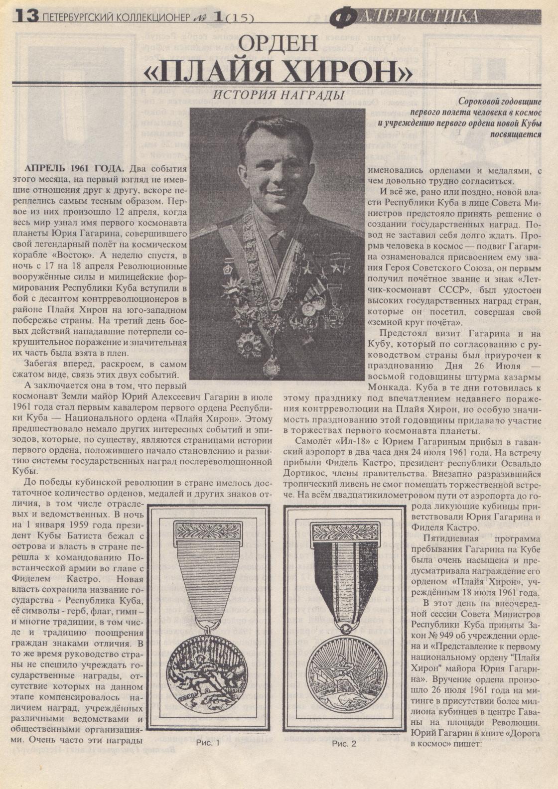 Кто еще из советских граждан был награжден орденом Плайя Хирон?