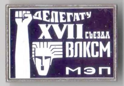Знак делегата Ленинградской организации на 17 съезд ВЛКСМ