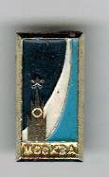 XX.226. Прямоугольник размером 9х17 мм. Внизу слева расположена Спасская башня Кремля. На втором плане виден след ушедшей вверх ракеты. Ниже на плашке приведена надпись: «Москва». Поле значка покрыто темно-синей эмалью, след ракеты – белой. Анод. ал. Бул.