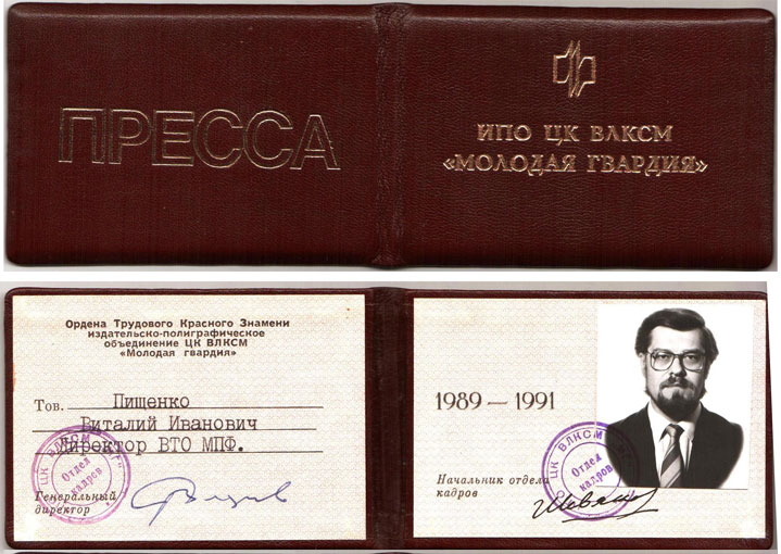 -Удостоверение работника Издательско-полиграфического отделения ЦК ВЛКСМ "Молодая Гвардия" (1989-1991)