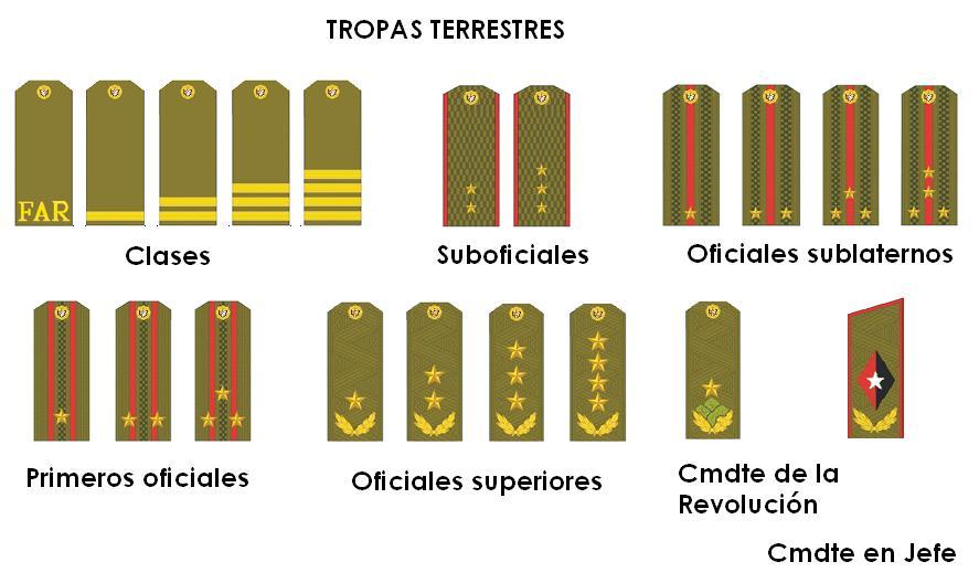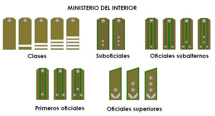 Oficiales Superiores: General de Brigada, General de División, General de Cuerpo de Ejército y General de Ejército.