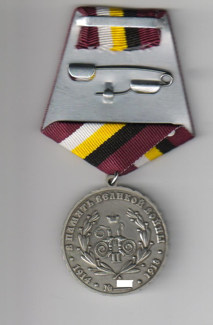 ММД. Тираж 400 экз.sedser2007 писал(а) :Императорская медаль «В память 100-летия Великой войны 1914-1918 гг.»