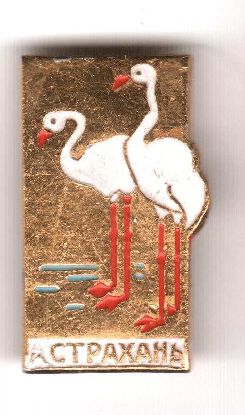 Мне, всё таки, больше нравится знак с венценосным журавлём размером 50 х 20 мм. :yahoo: Я в коллекцию положил значок с двумя цаплями? и с надписью "АСТРАХАНЬ". :good: