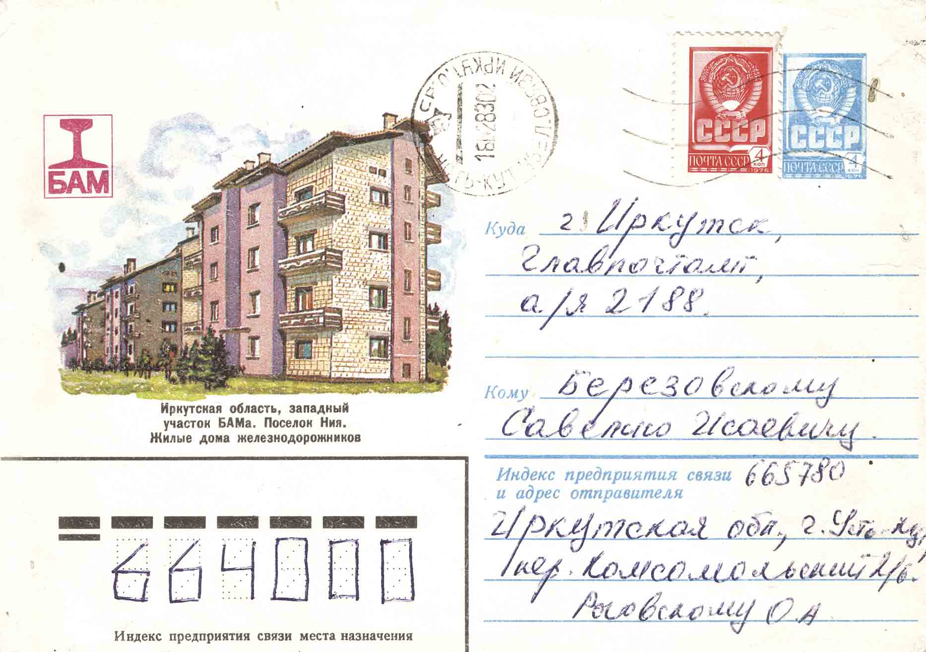 В 70-80-х годах государственный почтовый знак СССР отметил этот посёлок выпусками нескольких художественных маркированных конвертов с изображениями Нии :