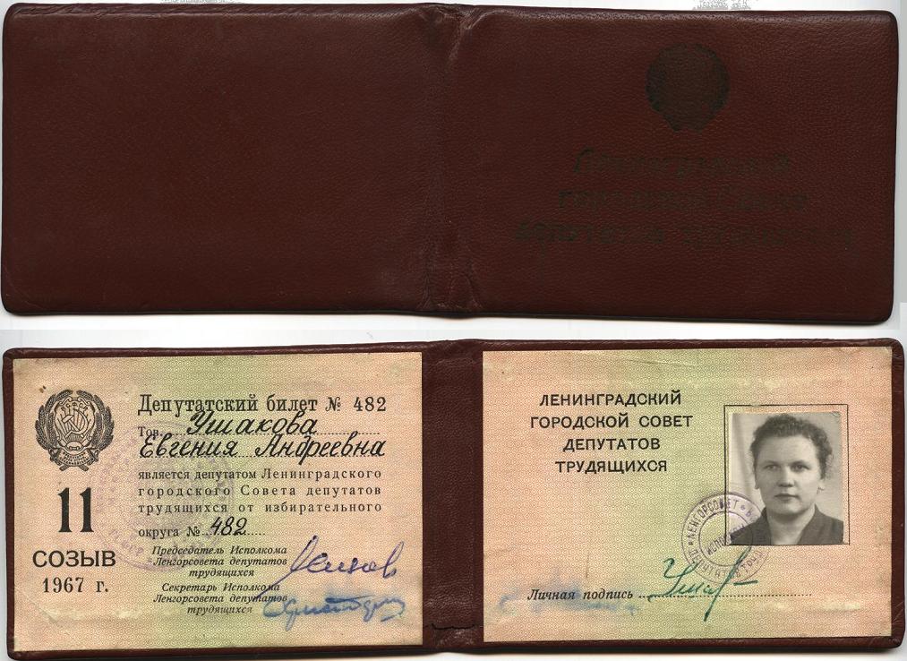 Ушакова Евгения Андреевна, депутатский билет № 482