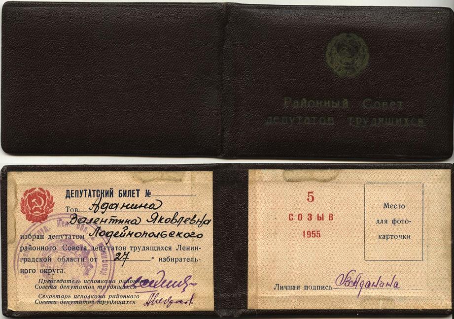 депутат Лодейнопольского районного совета депутатов трудящихся, Ленинградской области, 5 созыв 1955 год
