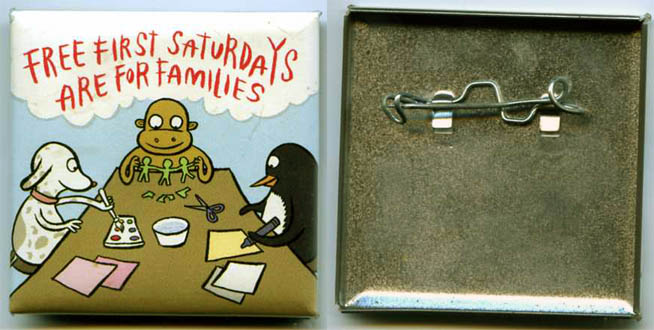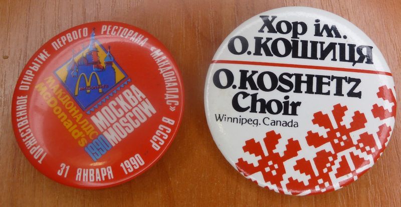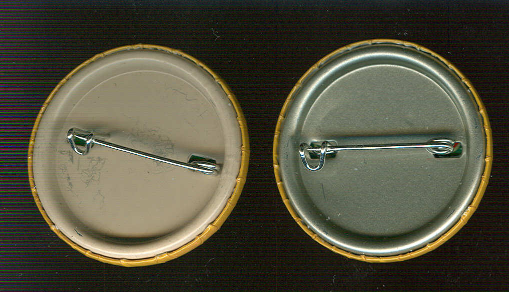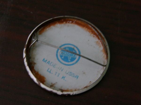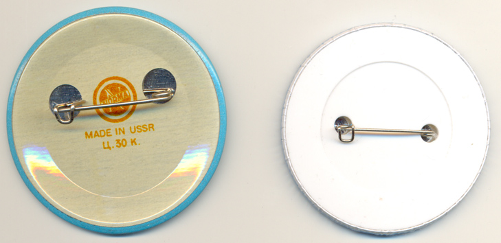 У них значки были 3-х размеров: 60 мм., 42 мм. в диаметре и совсем маленькие (c иголками, а не с застёжками).