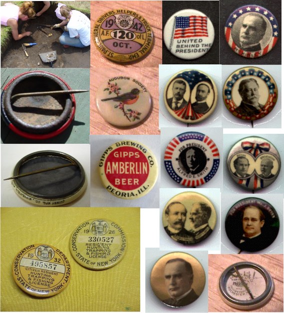 В США агитационные значки использовались ещё при Президенте Джордже Вашингтоне (George Washington). Для массового производства значков тогда использовали разные способы нанесения изображения. В последней половине 18-ого и первой половине 19-ого столетия значки были реальными пуговицами (англ. button), пришитыми на пальто, тогда как современные значки на задней стороне снабжены булавками. Первое фотографическое изображение на значках датируется 1860 годом. Абрам Линкольн (Abraham Lincoln) и его различные противники использовали tintype or ferrotype фотопроцесс.