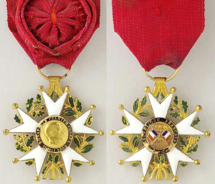 «Во исполнение статьи 87 Конституции относительно военных наград, а также чтобы вознаграждать гражданские службы и достоинства, будет образован Почетный легион». Этими словами в первой статье закона от 29 флореаля X года (19 мая 1802) было объявлено о рождении наиболее престижного ордена французских заслуг, имевшего девиз «Честь и Родина».
