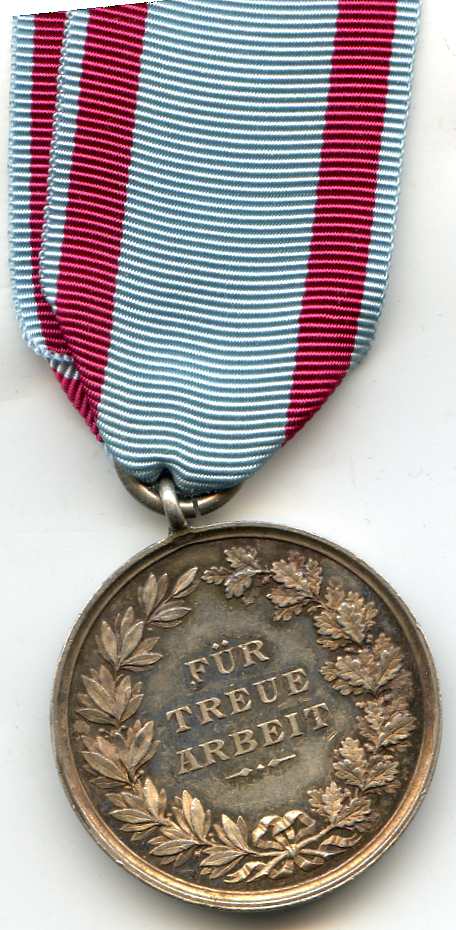 Реверс ; в венке из лавровых и дубовых ветвей надпись «FÜR TREUE DIENSTE» (за верную службу).