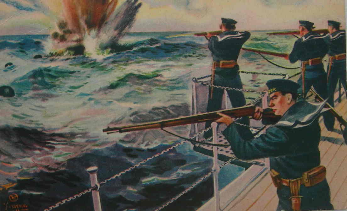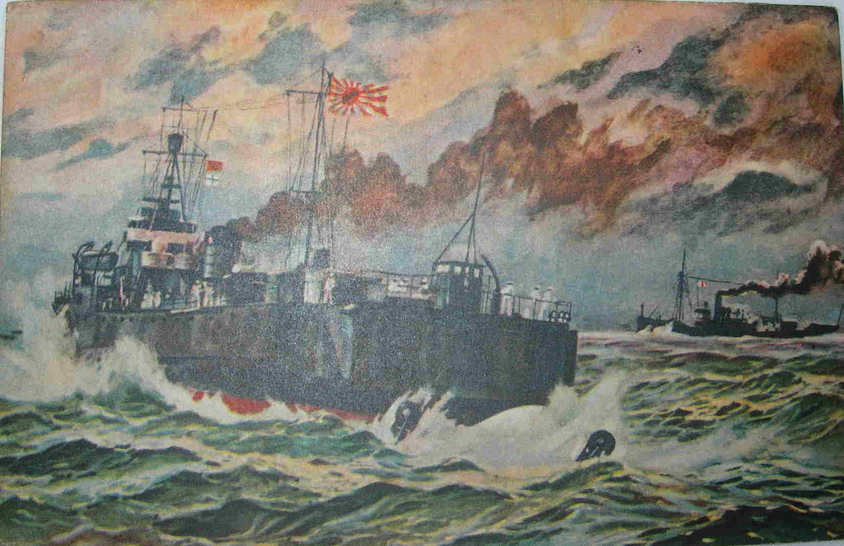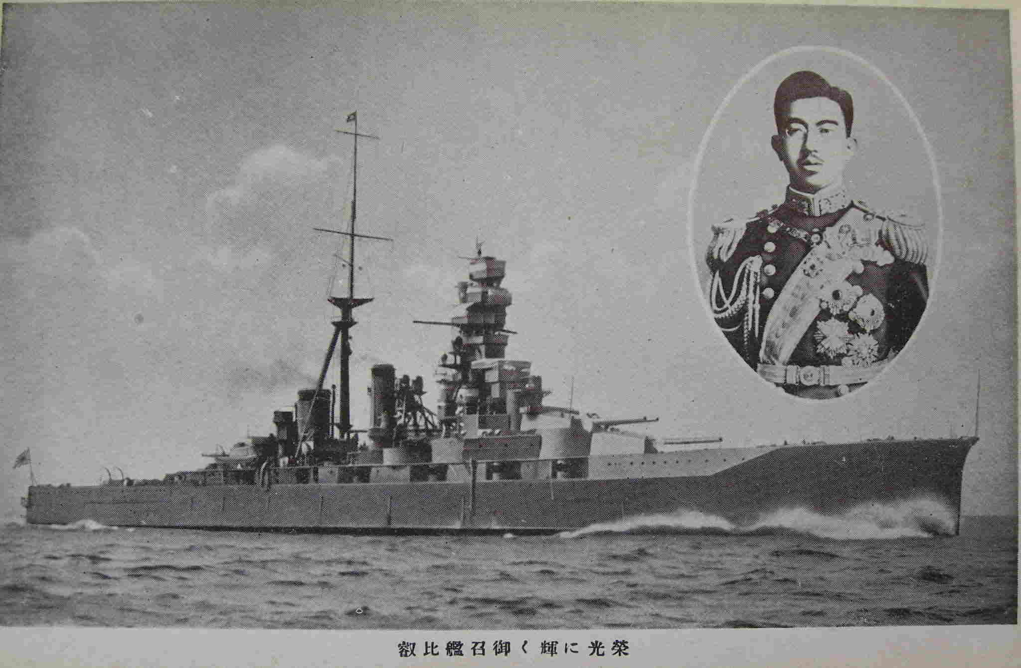В продолжение темы портрет императора Щова (Хирохито), на фоне японского крейсера.