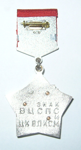 То, что этот знак вручался со знаком ВЦСПС и ЦК ВЛКСМ сомнительно.Chinovnik писал(а) :Отыскал! Знак вручался совместно с ЦК ВЛКСМ!!!